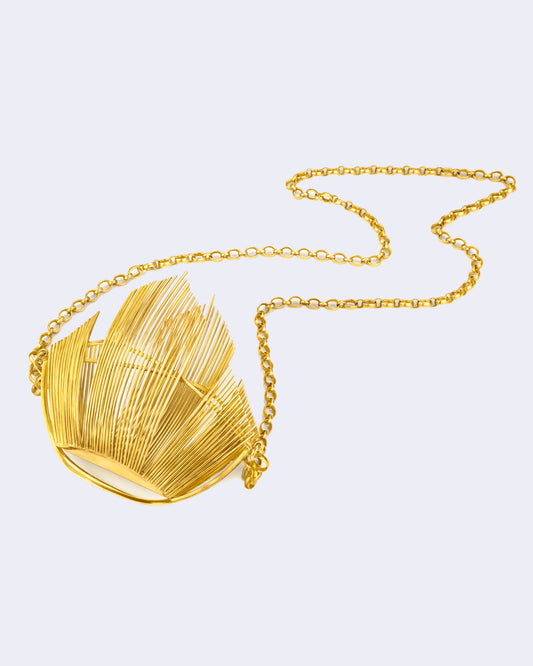 The JA.LIZAH realm is a collection of boundless expressions in cinematic storytelling, wearable art, sound design, performance art, and the Light Script – a living life diary that forms the golden thread of the designer’s journey. This golden thread represents continuously unfolding storylines, reflecting on the metaphysical cages from which the designer is breaking free. These cages are visually transformed into artefacts, keys to unlocking one's unlimited personal power, and building protective personal armour and strength through creative freedom of expression.